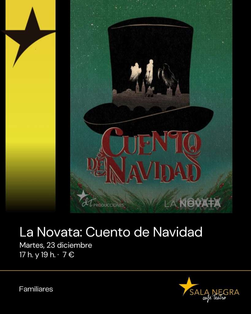 El próximo martes 23 de diciembre, dos días antes de Navidad, Sala Negra acogerá el estreno de Cuento de Navidad, una adaptación del clásico cuento de Charles Dickens, por parte de la compañía de teatro de alumnos y alumnas de la Escuela de Teatro Dinámica Teatral.